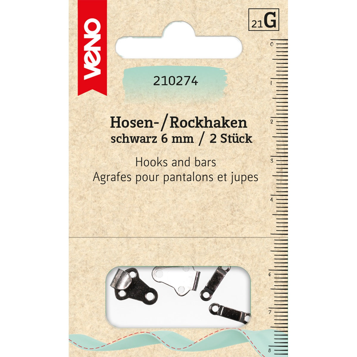 Hosen- Rockhaken 6mm schwarz